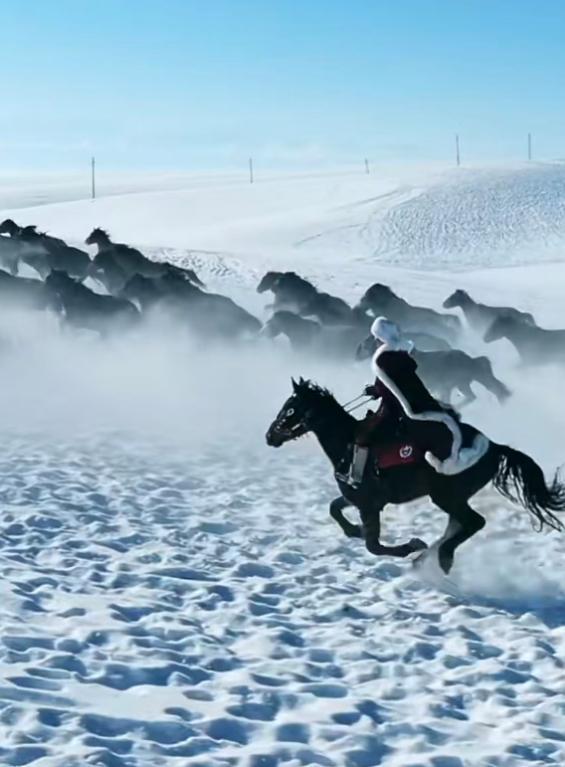 据悉,贺娇龙曾担任昭苏县副县长,为了振兴家乡经济,2021年,贺娇龙曾拍摄一则身披红衣,在茫茫雪地里策马奔腾的视频,这则视频随即在网络上大火。